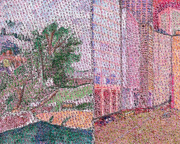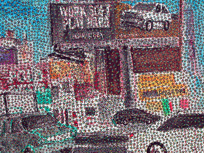 Fato pintado montado sobre manequim de cerca de 2 metros