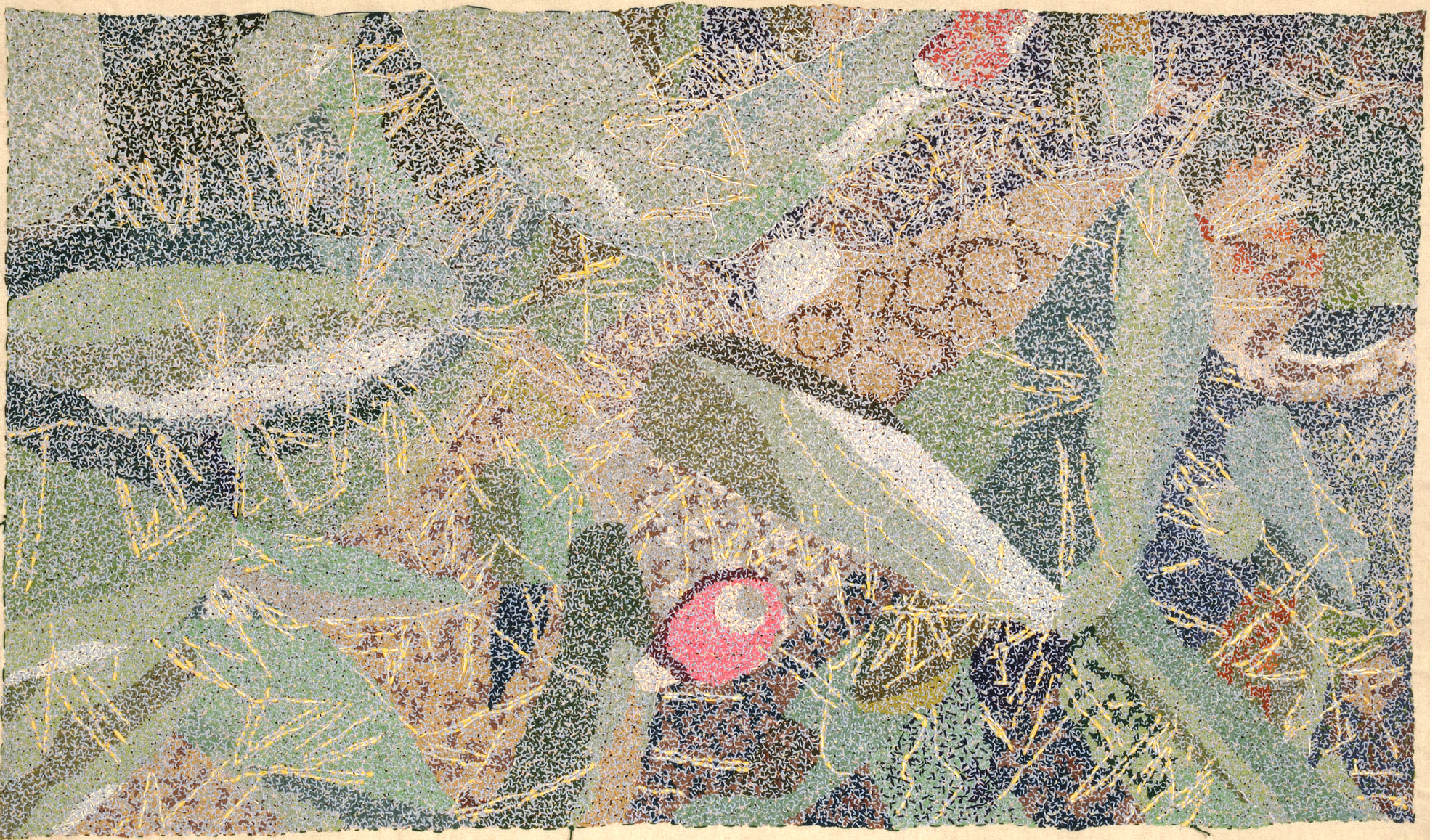 Photo by Teresa Maluenga, showing the sketch plans and manufacturing process of Tapete de Arraiolos 2.