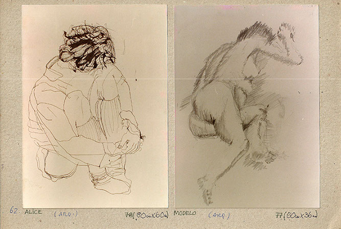 Guache and coloured pencil on paper