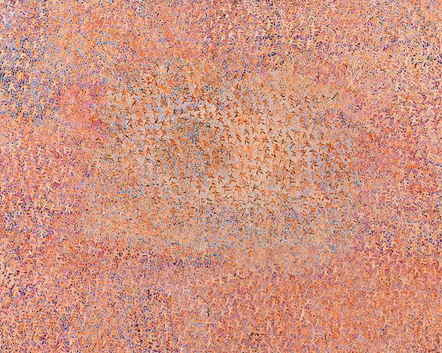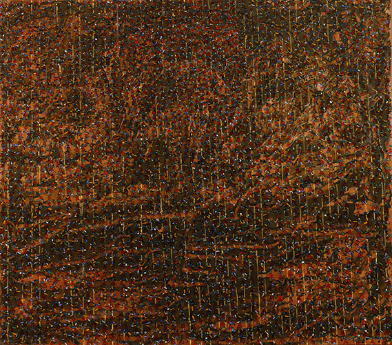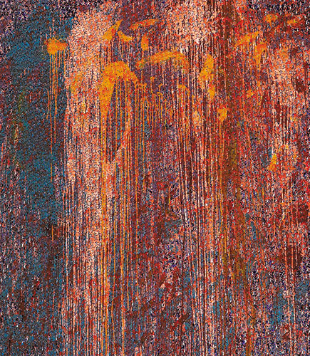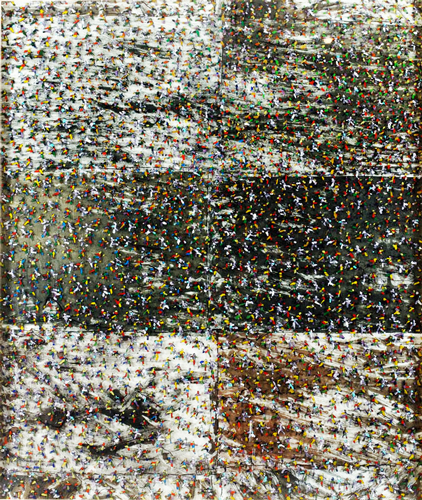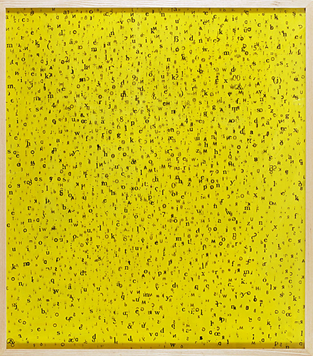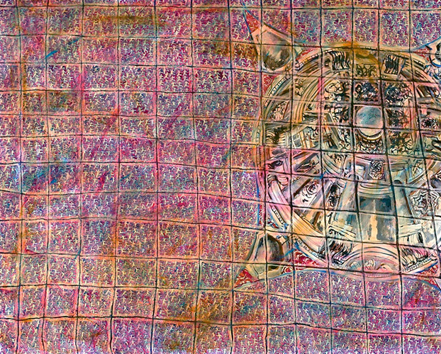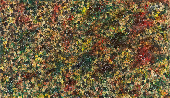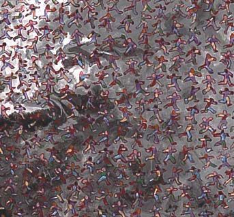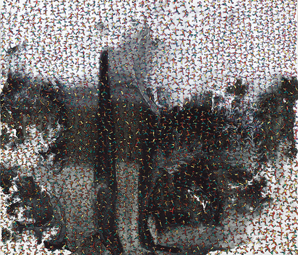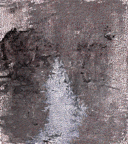 Reflecting acrylic over 4mm tempered broken glass over painted wood.