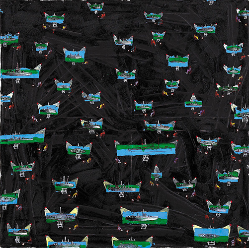 Plástico Acrílico e Vidro Pintado a óleo sobre tela