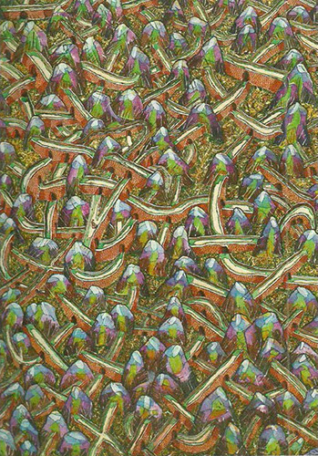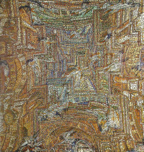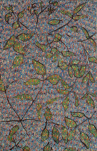 Óleo e fio de lã sobre tela