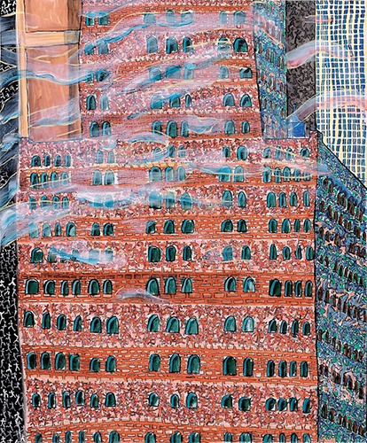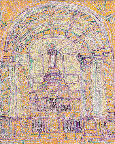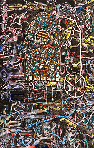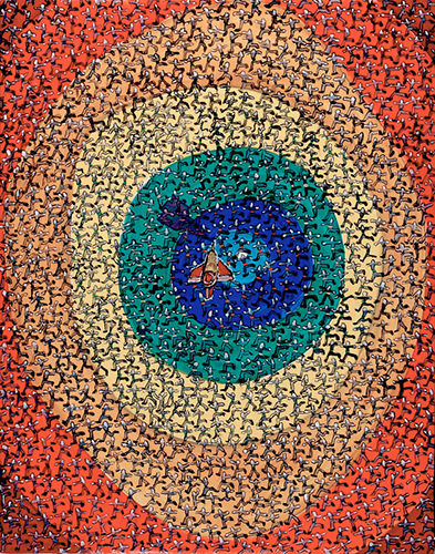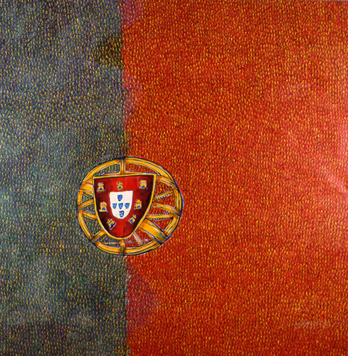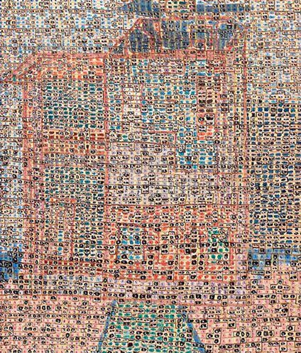 Fato pintado montado sobre manequim de cerca de 2 metros