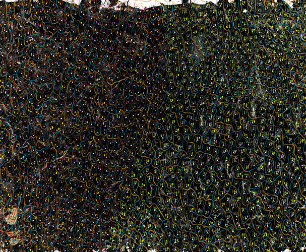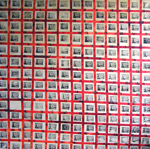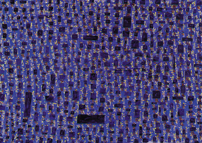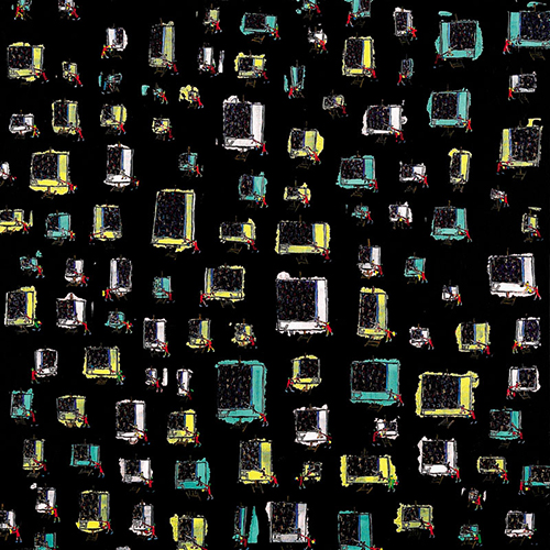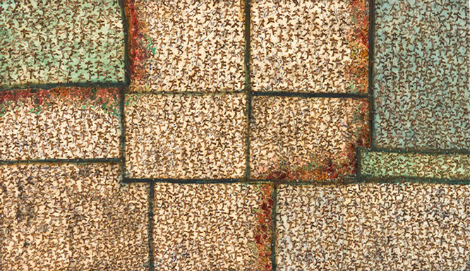 Reflecting acrylic over 4mm tempered broken glass over painted wood.