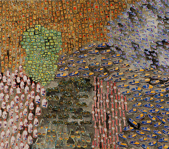 Plástico Acrílico e Vidro Pintado a óleo sobre tela